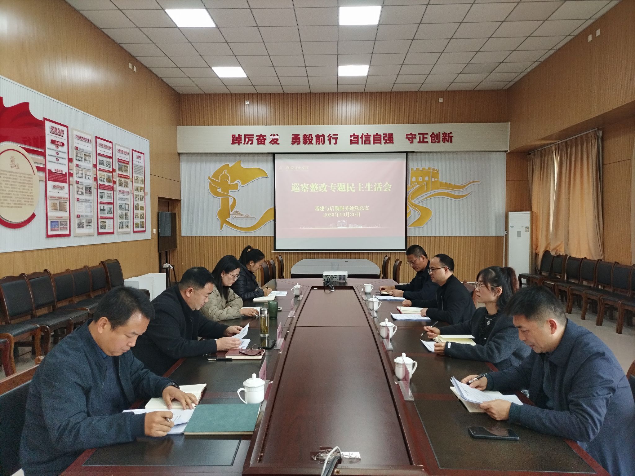 根据中共内江师范学院第四届委员会第二轮巡察第二巡察组关于巡察基建处党支部整改工作要求,2025年10月30日下午3时,基建与后勤服务处党总支在后勤楼204会议室召开了巡察整改专题民主生活会。学校党委常委、副校长张志勇、组织部副部长胡新新、纪检监察室副主任杨荣金、第四巡察组副组长芮田生莅临会议指导。会议由基建与后勤服务处党总支书记唐年庆主持。会议紧扣巡察反馈意见,围绕“四个聚焦”深入查摆问题,严肃开展批评与自我批评,明确整改方向和措施,推动巡察整改走深走实。