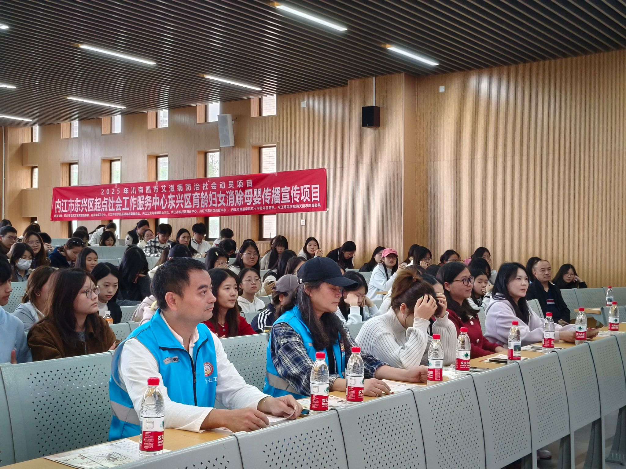 10月23日下午,“2025年川南四市艾滋病防治社会动员项目”高校专场——艾滋病、梅毒与乙肝(简称“三病”)母婴传播防护宣讲会,在明德楼B区112教室举行。活动由我校基建与后勤服务处与内江市东兴区起点社会工作服务中心主办,东兴区疾病预防控制中心提供专业支持,为青年学生带来了一堂实用的健康“必修课”。