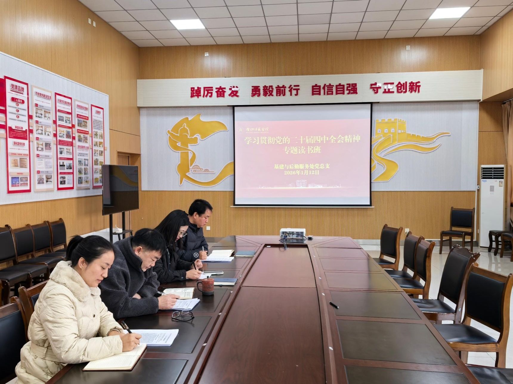 为深入学习贯彻党的二十届四中全会、省委十二届八次全会精神,2026 年 1 月 12日上午,基建与后勤服务处党总支举办专题读书班,围绕相关重要文件精神开展集中学习与深入研讨,学习由党总支书记唐年庆主持,全体班子成员参加学习。