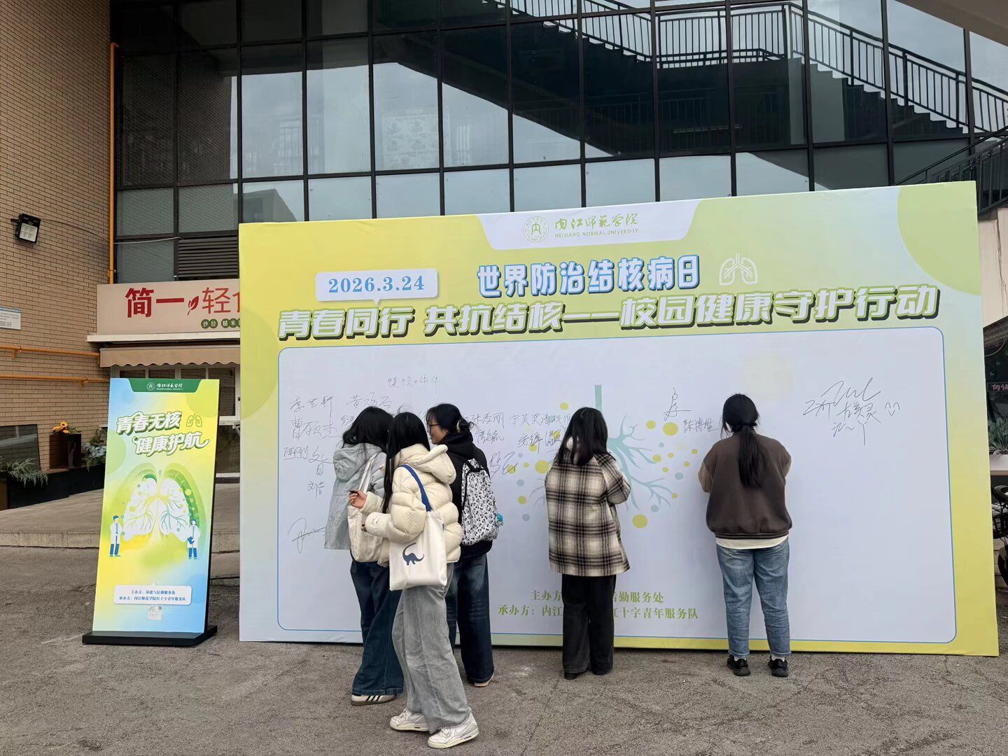 3月20日,由基建与后勤服务处主办的3.24世界防治结核病日线下宣传活动,在二食堂外顺利举行。本次活动以“青春同行,共抗结核——校园健康守护行动”为主题,采用趣味闯关打卡的形式,向全校师生普及结核病防治知识,营造了“全员知晓、全员参与、全员防护”的校园防核氛围。